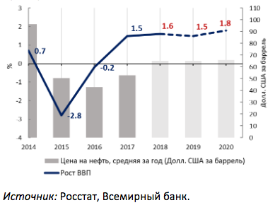 Перспективы экономического роста в России на 2018-2020 годы «остаются невысокими», – констатируют эксперты Всемирного банка: от 1,5% до 1,8%.