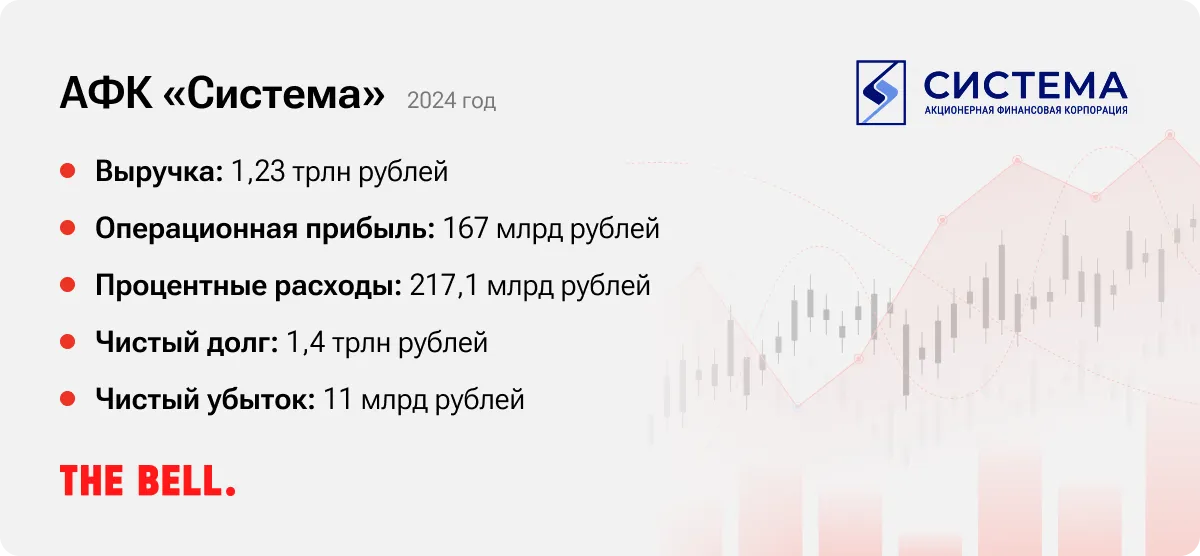 В холдинг Владимира Евтушенкова входит около двух десятков компаний, включая мобильного оператора МТС, сеть клиник «Медси», онлайн-ритейлера Ozon, агрохолдинг «Степь», фармацевтическую компанию «Биннофарм» и другие. Продажи ключевых компаний группы в прошлом году росли двузначными темпами, консолидированная выручка самой «Системы» выросла почти на 18% и превысила 1,2 трлн рублей. Главная кэш-машина холдинга — по-прежнему МТС. В прошлом году выручка оператора превысила рекордные за всю его историю 700 млрд рублей. Но, несмотря на эти рекорды, два года подряд «Система» отчитывается об убытках. В прошлом году чистый консолидированный убыток корпорации превысил 11 млрд рублей, в 2023-м — 5,3 млрд.