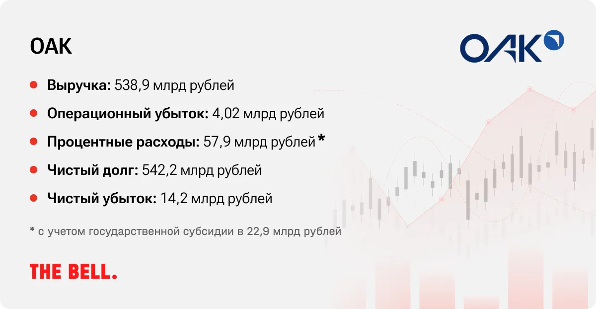 С 2020 года ОАК ежегодно генерирует убытки в размере не менее 30 млрд рублей. Прошедший 2024 год не стал исключением. Чистый убыток компании составил 14,19 млрд рублей против 34,85 млрд годом ранее — помог рост экспортных отгрузок. Выручка выросла на 13%, достигнув 539 млрд рублей.