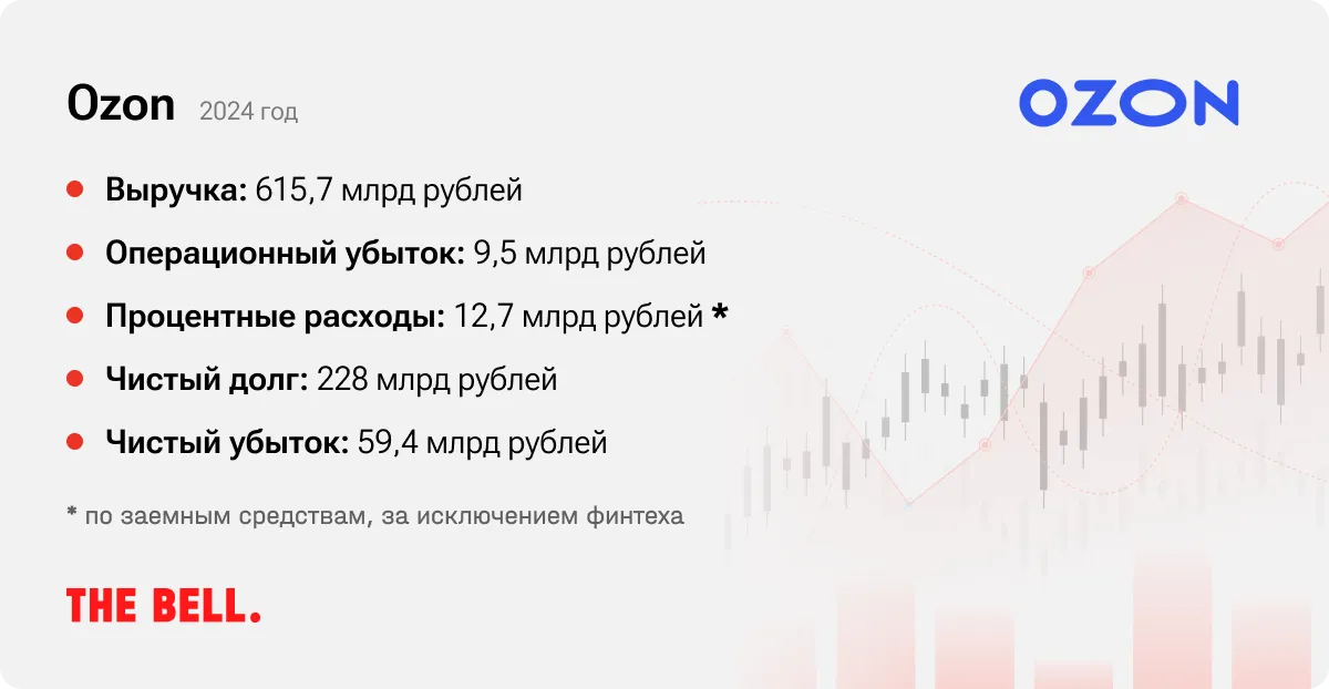 Оборот Ozon в прошлом году вырос до 2,9 трлн рублей — и по этому показателю маркетплейс уже приближается к крупнейшим торговым сетям. Для сравнения: выручка «Магнита» в 2024 году составила 3,04 трлн рублей, X5 — 3,9 трлн рублей. Но вместе с оборотами росли и убытки: прошлый год Ozon закрыл с минусом в 59,4 млрд рублей, нарастив убыток почти на 40%. Чистый долг группы на конец 2024 года составлял 228 млрд рублей, а на конец первого полугодия 2025-го — 240 млрд.