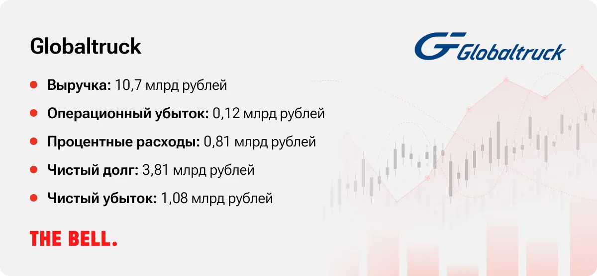 2024 год компания завершила с убытком более чем в миллиард рублей против 882 млн чистой прибыли годом ранее. Выручка упала на 47%, до 10,7 млрд рублей. Акции Globaltruck по итогам года вошли в топ-10 худших российских бумаг: за год их цена упала на 59% за бумагу.