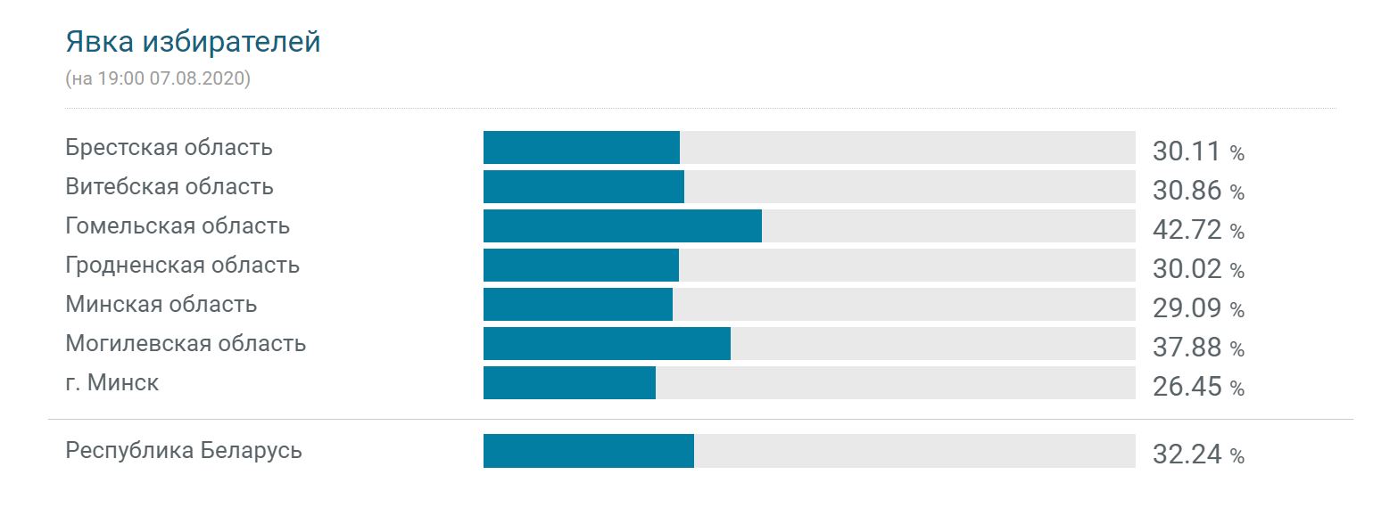 Досрочные выборы, которые власти во всех странах электорального авторитаризма активно используют для фальсификации результатов, в Белоруссии стартовали еще 4 августа. Цифры, которые публикует белорусский ЦИК, не дают усомниться в том, что фальсификации будут массовыми. К 19:00 пятницы явка, по официальным данным, превысила 32%. Независимые наблюдатели говорят о ее завышении как минимум в 1,5 раза.